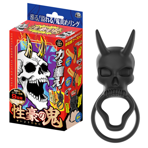 鬼面に秘めた振動源が自身も相手も狂わせるコックリングローター!2本のリングによる締め付けで勃起力を強化したり、手持ちして責めローターとして愛撫に活用したりと鬼イキ目指して遊べるっ!