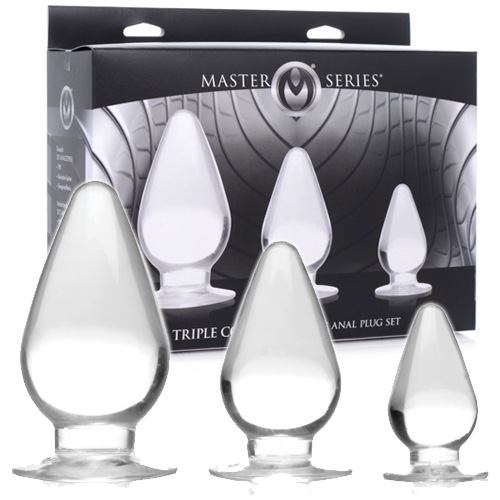 クリアなエラストマー素材を使ったアナルプラグ3サイズのセットで、拡張を目的とした方に向いていますが、最小モデルでも最大径4.3cmとなっているので、ちょっと慣れた方で、初心者の方には向かないと思います。