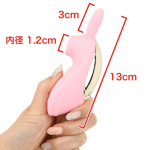 クリやチクビを吸引しながら内包した舌ギミックがツンツン!さらにウサミミにはそれぞれ振動モーターを内蔵し、挟んでの振動刺激もできちゃう2wayタイプのローター!