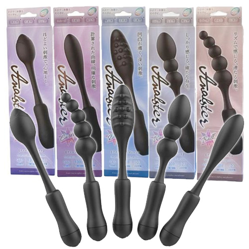 5種類の形状が異なる挿入シャフトから選べるアナルスティックタイプのバイブ!前立腺も狙いやすい長すぎず短すぎないサイズ感で設計され、ネックもフレキシブルに曲がるので位置調整がしやすいのもポイント!
